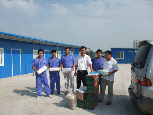 項(xiàng)目部經(jīng)理黃建海向李主席一行表示熱烈歡迎,就項(xiàng)目工程進(jìn)度、質(zhì)量、安全生產(chǎn)及職工的生活情況進(jìn)行了匯報(bào),李主席對(duì)項(xiàng)目部工作給予了肯定,并對(duì)項(xiàng)目部開(kāi)展“雙爭(zhēng)”競(jìng)賽活動(dòng)作了指導(dǎo)。李主席一行深入施工現(xiàn)場(chǎng),向堅(jiān)守在一線(xiàn)的員工表示了慰問(wèn),他指出要做好一線(xiàn)職工防暑降溫工作,確保項(xiàng)目工程無(wú)一例安全事故,勉勵(lì)大家要抓住當(dāng)前有利的施工條件,進(jìn)一步加快施工進(jìn)度,抓好工程質(zhì)量,為公司項(xiàng)目創(chuàng)建品牌工程,并親手送上了防暑降溫物品。