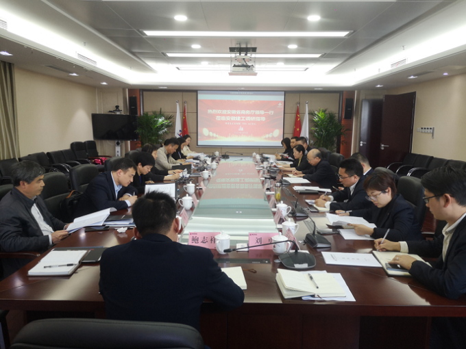 邢應梅向調(diào)研組匯報了安徽建工近年來總體發(fā)展情況、海外業(yè)務改革發(fā)展運行情況、當前全球疫情形勢及國際政治形勢下面臨的困難及安建海外“國內(nèi)國際雙循環(huán)、外經(jīng)外貿(mào)雙驅(qū)動”的未來發(fā)展思路和落實舉措。會上,雙方還就部分市場區(qū)國家營商環(huán)境、發(fā)展機遇、外貿(mào)品類、海外倉建設等問題進行了交流。