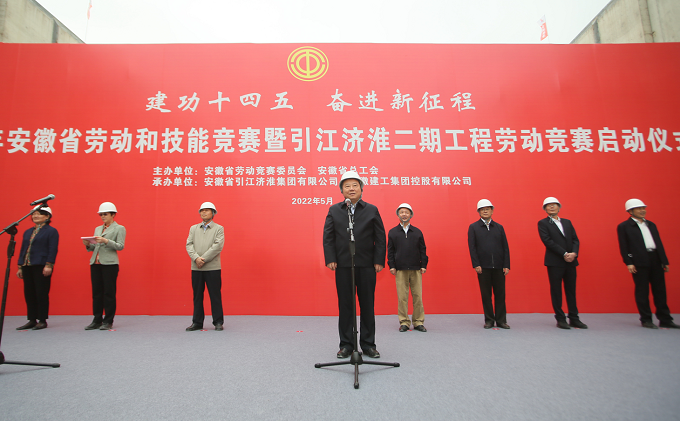 省人大常委會黨組副書記、副主任,省總工會主席宋國權宣布競賽啟動,省勞動競賽委員會副主任、省總工會黨組書記、副主席徐發(fā)成作競賽動員講話。省發(fā)改委一級巡視員、省引江濟淮辦公室主任胡再生,安徽建工集團控股有限公司黨委書記、董事長趙時運分別致辭。