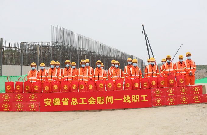 啟動儀式后,宋國權一行還看望慰問了建設工地一線職工,為他們送上慰問品。宋國權強調,引江濟淮工程是國家重大水利工程,也是安徽基礎設施建設一號工程。希望廣大職工弘揚勞模精神、勞動精神、工匠精神,利用勞動競賽的廣闊平臺,以賽促訓、以賽促建,為工程項目的安全高效建設貢獻智慧和力量;勤學苦練、深入鉆研,不斷提升技術技能水平,努力成為行家里手、業(yè)務好手。