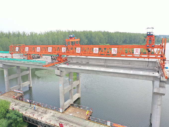 為確保架梁工作順利進行,項目部在每榀箱梁提、運、架作業(yè)前,堅持“一吊一檢”,通過檢查電機等有無異常聲音和異?,F(xiàn)象,進行液壓、起吊系統(tǒng)和制動設(shè)備等20多項專項檢查,杜絕機器帶病作業(yè)的現(xiàn)象。箱梁架設(shè)中,專職安全員全過程盯控,嚴禁架設(shè)過程出現(xiàn)“三違”作業(yè)。與此同時,架梁隊伍嚴格遵守事前、事中、事后各階段的安全規(guī)程和安全防護措施,保障了設(shè)備及人身安全以及整個架設(shè)過程的安全性。