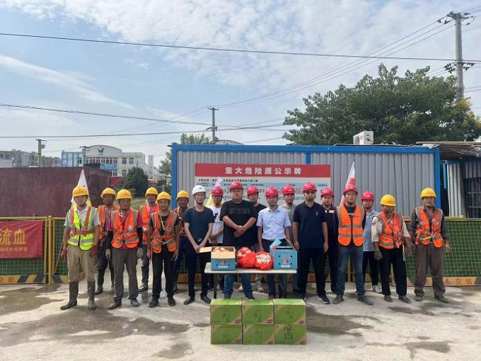 中秋佳節(jié)是闔家團(tuán)圓的日子,而瑤海雨污二期項(xiàng)目部一線工人堅(jiān)守崗位,繼續(xù)為項(xiàng)目建設(shè)作出貢獻(xiàn)。為了廣大工友在項(xiàng)目過一個(gè)祥和、溫暖的中秋節(jié),9月10日上午,項(xiàng)目部聯(lián)合合肥市瑤海區(qū)市政養(yǎng)護(hù)管理處慰問一線工人,向堅(jiān)守在施工一線的工友送上節(jié)日祝福。