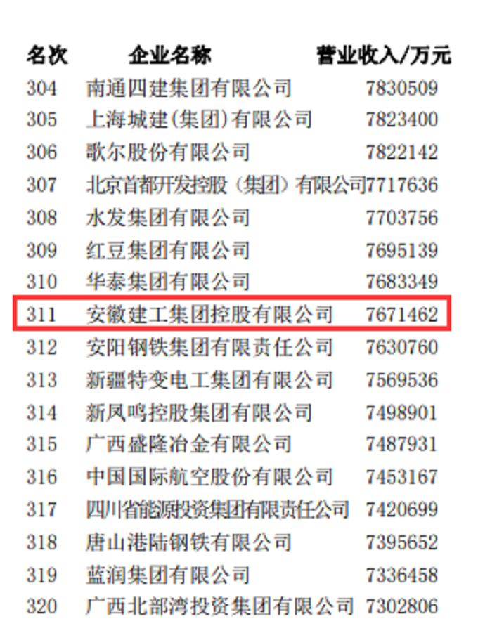 據(jù)悉,本次共有9家安徽企業(yè)上榜2022中國企業(yè)500強,安徽建工集團居安徽省第4位。