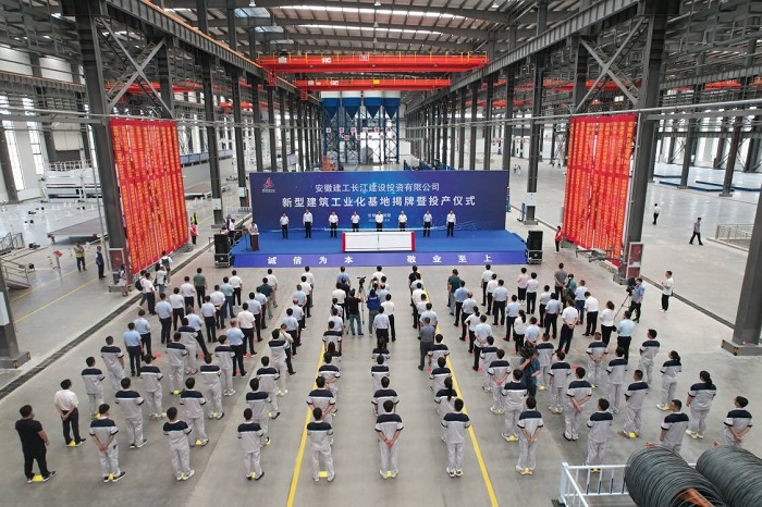 6月18日上午,安徽建工長江建設(shè)投資有限公司新型建筑工業(yè)化基地揭牌暨投產(chǎn)儀式在銅陵市義安區(qū)舉行,銅陵市委書記丁純和建工控股黨委書記、董事長趙時運共同為基地投產(chǎn)推桿啟動。銅陵市委常委、市委秘書長胡啟書,副市長汪發(fā)進,建工股份黨委副書記、總經(jīng)理、董事李有貴,義安區(qū)委書記姚貴平,區(qū)委副書記、區(qū)長方小雄,銅陵市建投黨委副書記、總經(jīng)理張明,安建總承包黨委書記、總經(jīng)理、長江建投董事長張沖等出席儀式。汪發(fā)進、李有貴在儀式上分別致辭,張沖介紹長江建投及新型建筑工業(yè)化基地情況。安建總承包副總經(jīng)理、長江建投總經(jīng)理陳道兵主持儀式。