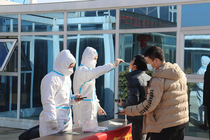 突出黨建引領,嚴格落實疫情防控責任。引江濟淮項目部積極發(fā)揮黨支部戰(zhàn)斗堡壘作用,密切聯(lián)系屬地政府部門,積極開展支部聯(lián)建共建,積極探索企業(yè)新時代文明實踐點、鄉(xiāng)鎮(zhèn)新時代文明實踐所、村(社區(qū))新時代文明實踐站齊發(fā)力打造志愿服務陣地平臺,用文明實踐賦能地方和企業(yè)高質量發(fā)展。近日,為做好節(jié)后復工復產(chǎn)工作,引江濟淮項目部聯(lián)合嚴店鄉(xiāng)人民政府、嚴店鄉(xiāng)蓮花村、嚴店鄉(xiāng)衛(wèi)生院以引江濟淮新時代文明實踐點為平臺開展志愿服務活動,在實踐點設置臨時核酸檢測點,對引江濟淮項目復工復產(chǎn)人員進行全員核酸檢測,助力企業(yè)復工復產(chǎn)。