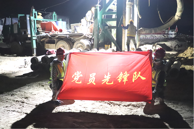為加快推進工程進度,項目部吹響了2023年施工沖鋒號角,先后成立黨員先鋒隊、青年突擊隊,項目領(lǐng)導(dǎo)班子成員帶頭夜間輪流值班,全體項目晝夜苦干實干,目標(biāo)堅定、迎難而上。截至3月底,項目已累計完成樁基施工117根、路基填筑6500方、水泥攪拌樁施工2090米、便道填土4876米、擋墻施工1300方、鋼筋籠143套。