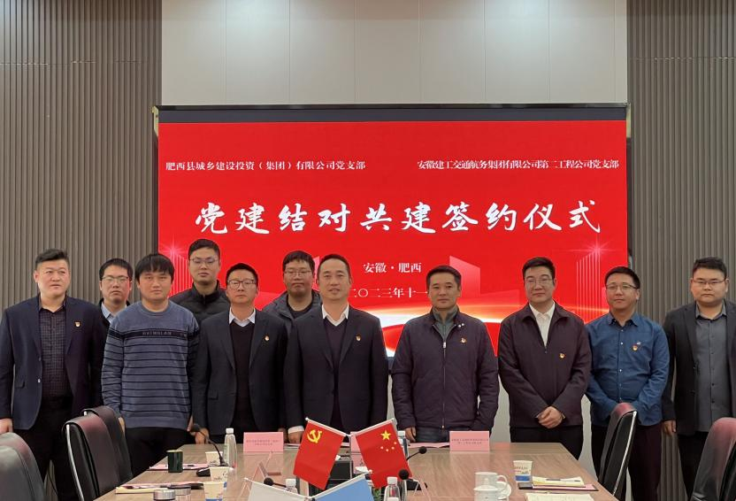 為進(jìn)一步推進(jìn)黨建與業(yè)務(wù)工作深度融合,充分發(fā)揮黨支部戰(zhàn)斗堡壘作用和黨員先鋒模范作用,探索構(gòu)建結(jié)對幫帶、雙向促進(jìn)、共同提高的黨支部黨建工作新格局。11月16日上午,肥西縣城鄉(xiāng)建設(shè)投資(集團(tuán))有限公司黨支部與建工交航第二工程公司黨支部在潭沖河家園項(xiàng)目舉辦了黨建結(jié)對共建簽約儀式。
