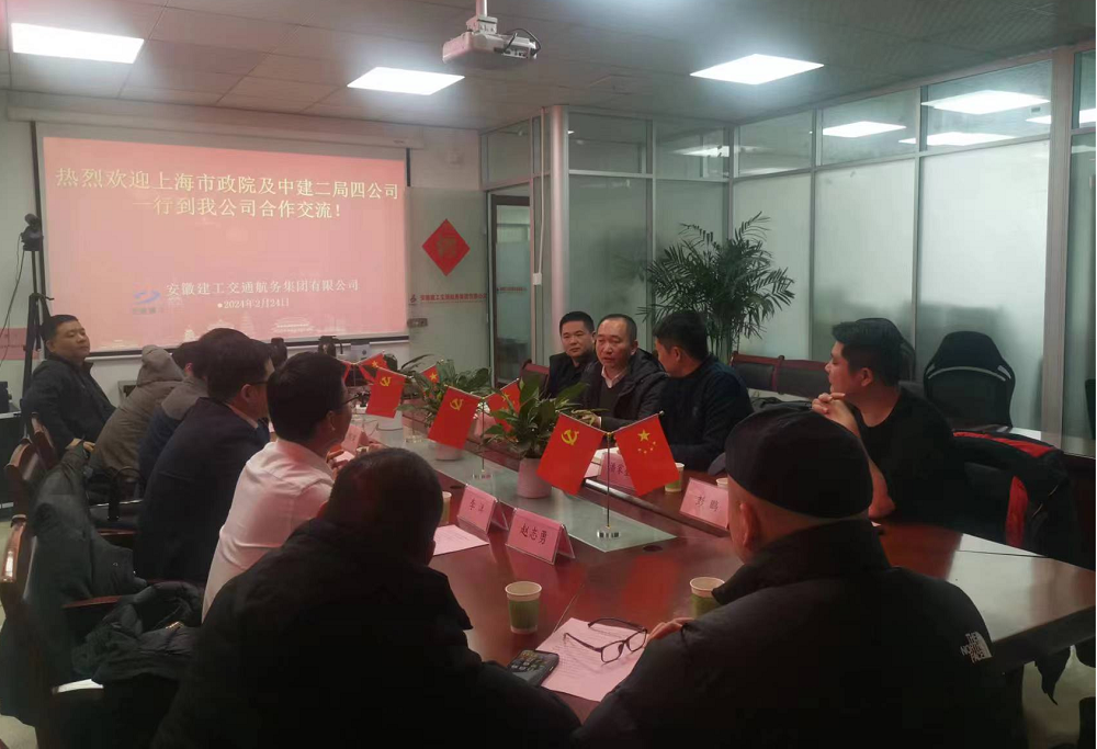 2月24日上午,上海市政工程設(shè)計(jì)研究總院(集團(tuán))有限公司副院長(zhǎng)陳建、中建二局四公司安徽分公司總經(jīng)理董震震一行赴公司商談項(xiàng)目合作。建工交航副總經(jīng)理邢磊熱情接待并召開商談會(huì)。