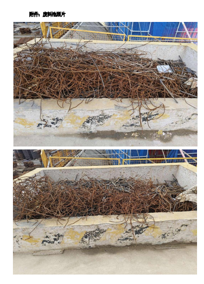 一、處置項目:黃山市徽州區(qū)城東產(chǎn)業(yè)園項目廢舊鋼筋頭約3噸,廢 舊鐵架2噸,廢舊塑料制品2噸。合肥七水廠三期項目廢舊鋼筋頭約5噸。合肥市瑤海區(qū)商機廠租賃住房項目約10噸。