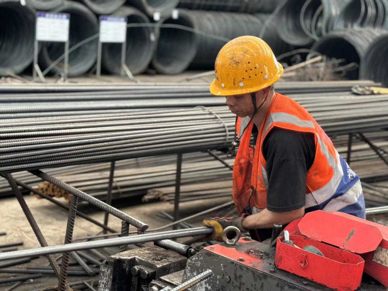 ▲徐淮阜高速項(xiàng)目-互通鋼筋廠工人進(jìn)行鋼筋加工預(yù)彎
