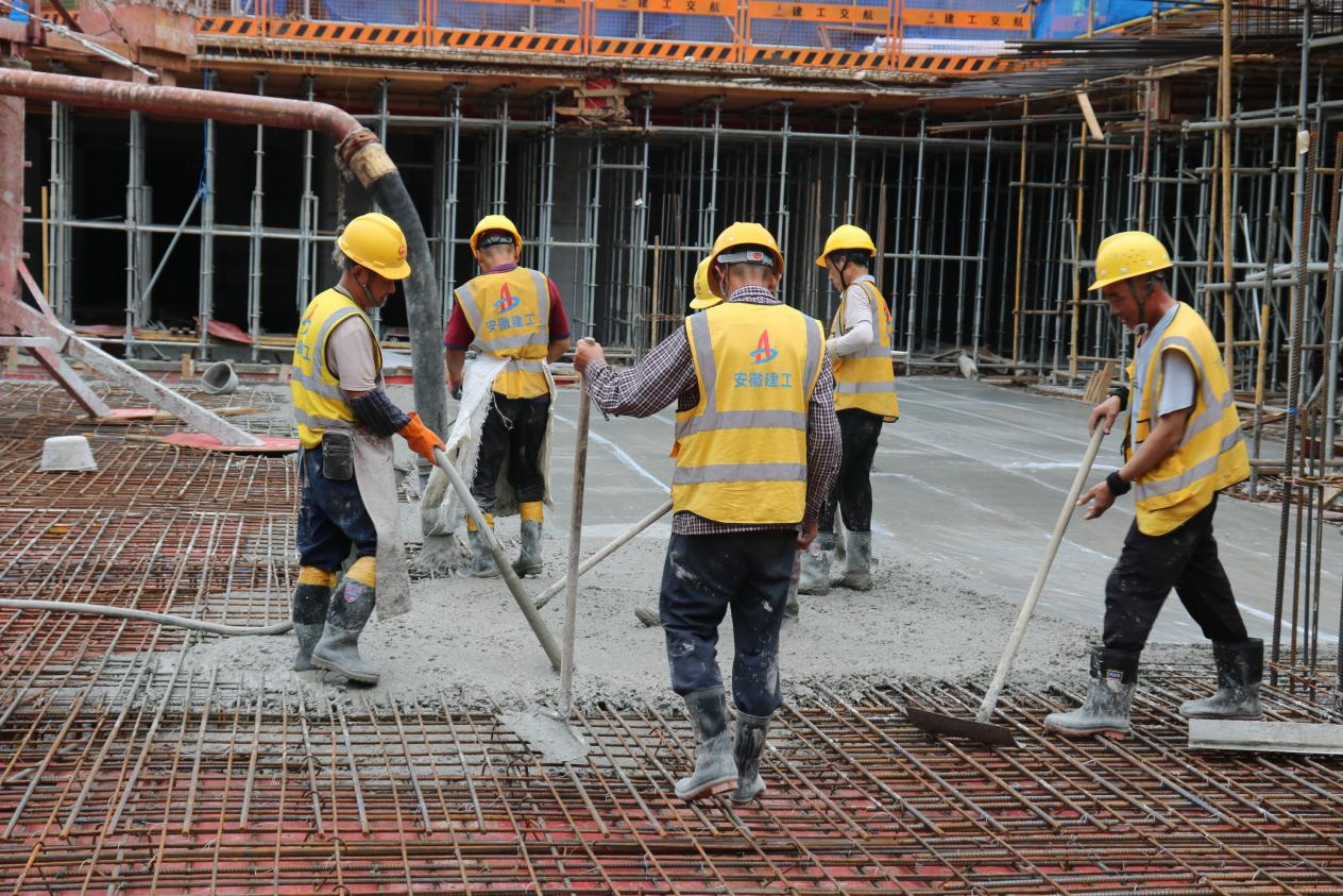 ▲合肥瑤海區(qū)商機(jī)廠項目-5區(qū)地庫負(fù)二層頂板混凝土澆筑