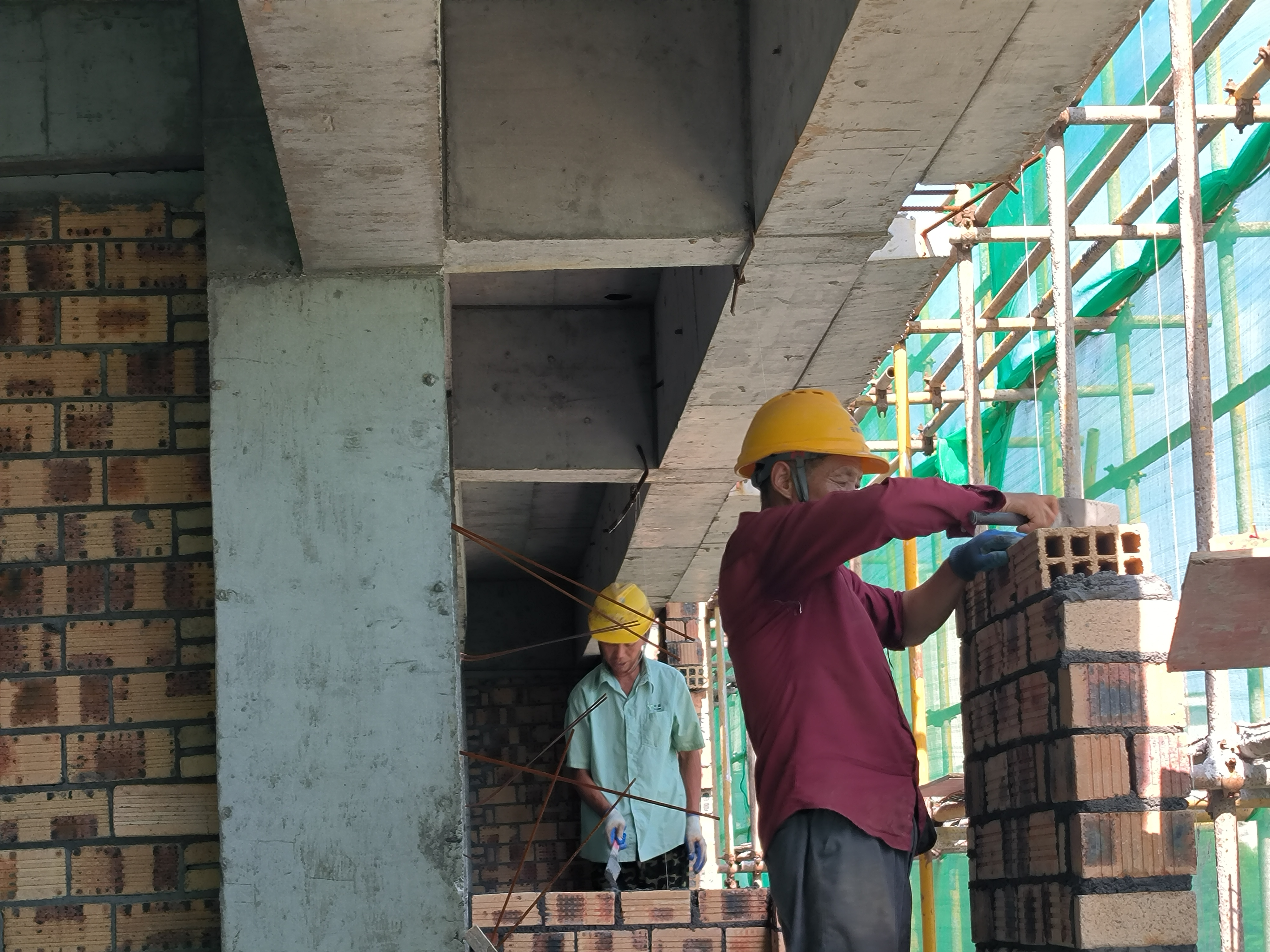 ▲淮南壽縣保障房項(xiàng)目-瓦工班組工人砌筑墻體