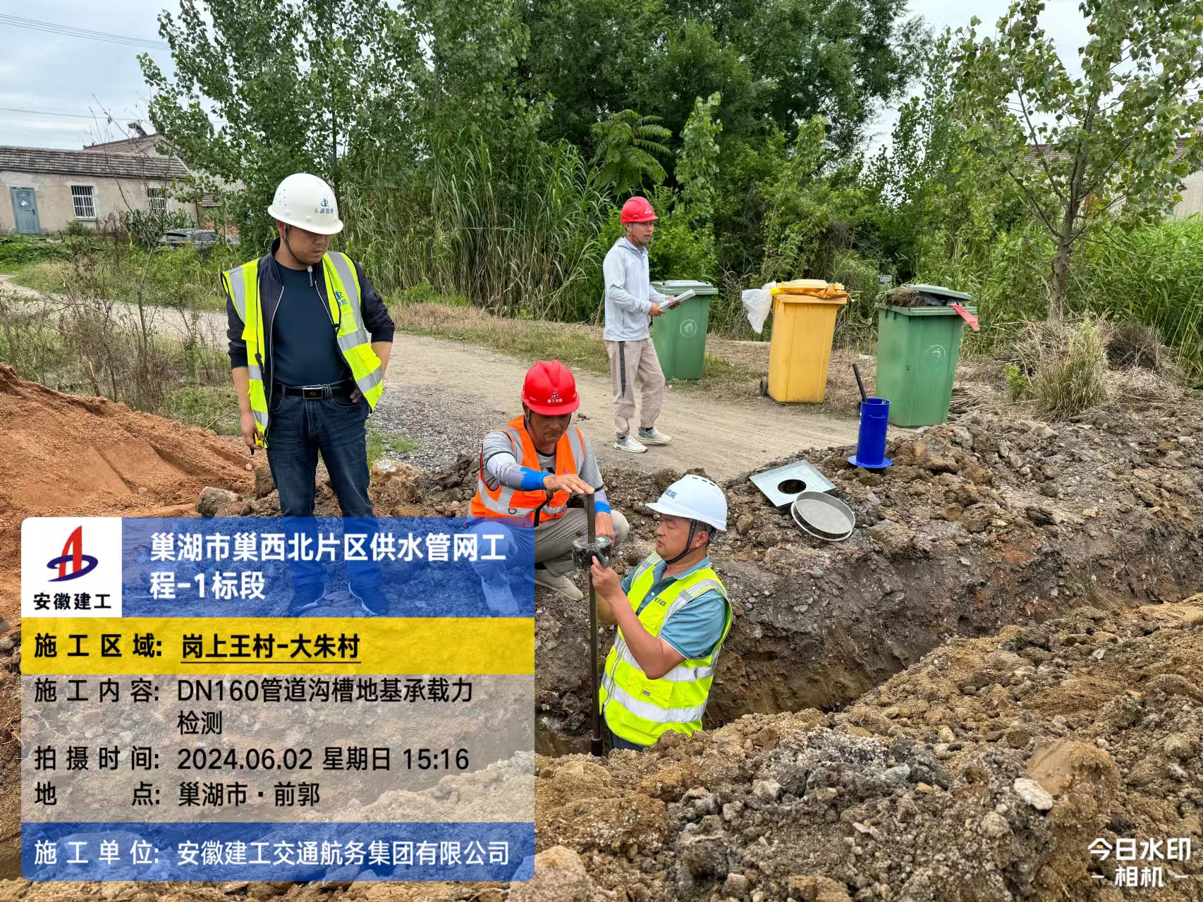 ▲巢湖市西北片區(qū)供水管網(wǎng)提升工程-管道溝槽地基承載力檢測(cè)