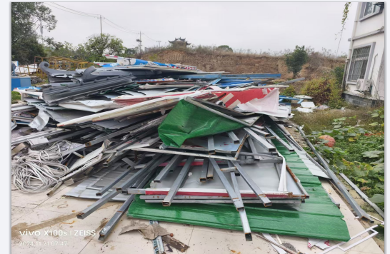 黃山城北產(chǎn)業(yè)園項(xiàng)目廢舊廣告牌、彩鋼瓦等約3噸。
