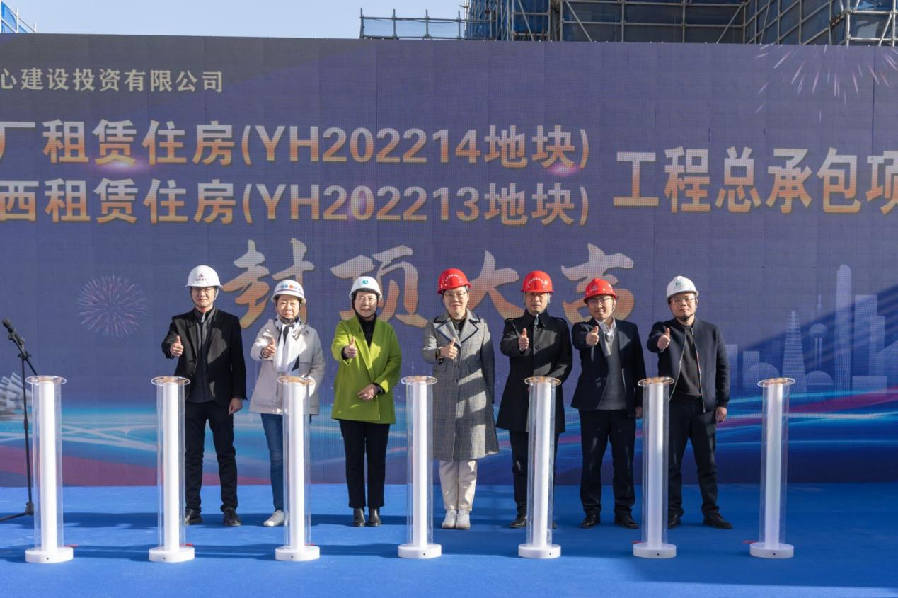 11月28日,合肥市瑤海區(qū)商機廠租賃住房項目施工現(xiàn)場彩旗飄揚,隨著最后一方混凝土的澆筑完成,項目所有樓棟全部提前順利封頂。