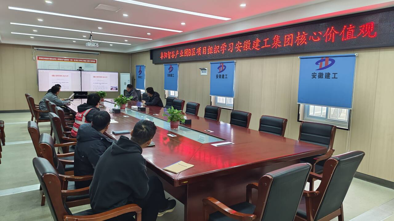 阜陽(yáng)智谷產(chǎn)業(yè)園項(xiàng)目召開專題會(huì)議,集中學(xué)習(xí)了集團(tuán)下發(fā)的《關(guān)于開展安徽建工集團(tuán)核心價(jià)值觀學(xué)習(xí)宣貫的通知》,鮮明解讀了“誠(chéng)信共贏 卓越創(chuàng)新 忠誠(chéng)擔(dān)當(dāng) 敬業(yè)清正”核心價(jià)值觀的深刻含義。