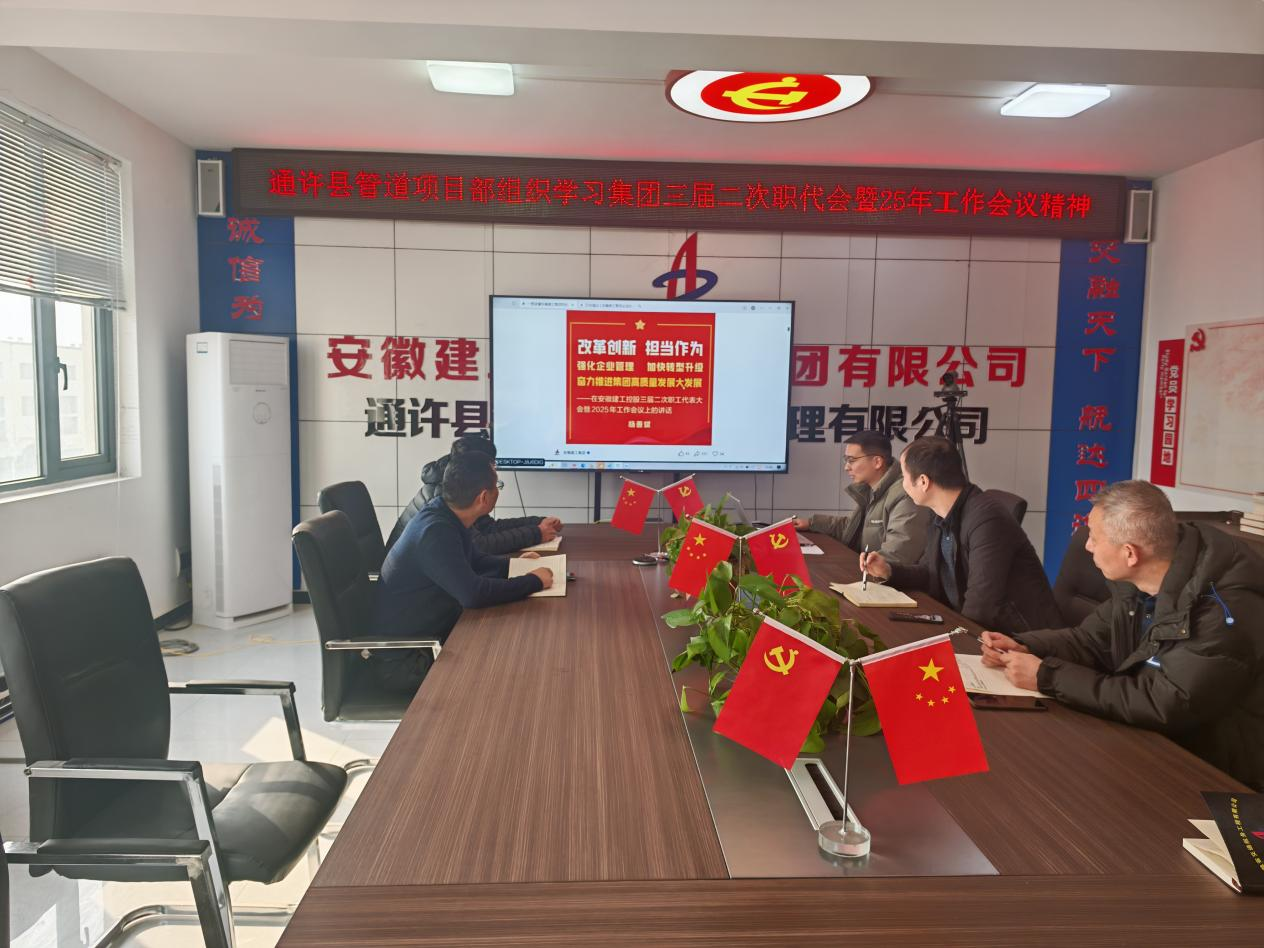 通許縣管道項(xiàng)目召開專題會(huì)議,學(xué)習(xí)貫徹集團(tuán)三屆二次職代會(huì)暨2025年工作會(huì)議精神。會(huì)議要求,要將職代會(huì)精神與實(shí)際工作緊密結(jié)合,壓實(shí)責(zé)任鏈條,依據(jù)“八個(gè)更大突破”目標(biāo)要求,將各項(xiàng)工作舉措層層推進(jìn)、貫徹落實(shí),以釘釘子的精神推動(dòng)集團(tuán)職代會(huì)精神落地見效。
