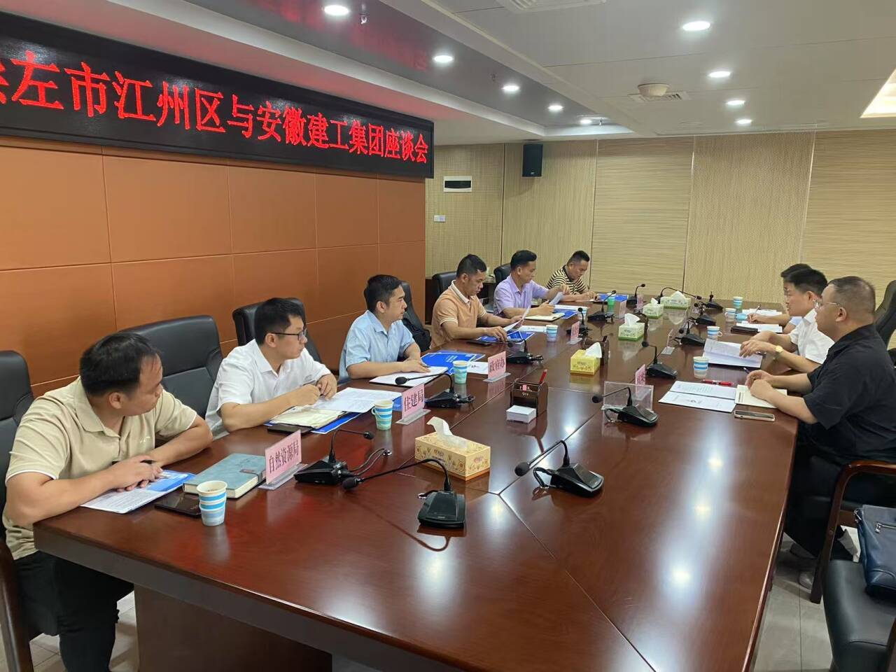 南寧市高新區(qū)、崇左市江州區(qū)有關(guān)部門領(lǐng)導,安徽建工集團廣西分公司有關(guān)同志參加會談。