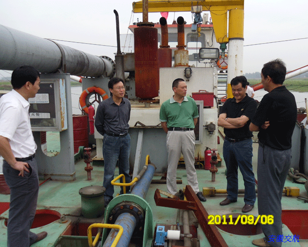 隨后,戴總一行來到交航公司第十工程處1600挖泥船上,在交航公司船隊(duì)主任許元康陪同下仔細(xì)參觀船體,并不時(shí)提出問題,都由許元康主任一一解答。集團(tuán)公司財(cái)務(wù)資產(chǎn)部主任李有貴表示該挖泥船在內(nèi)河疏浚行業(yè)具有先進(jìn)技術(shù)水平,因?yàn)榇w可以拆裝,對(duì)于那些不具備通航條件河道的整治工程具有很強(qiáng)的對(duì)口性。
