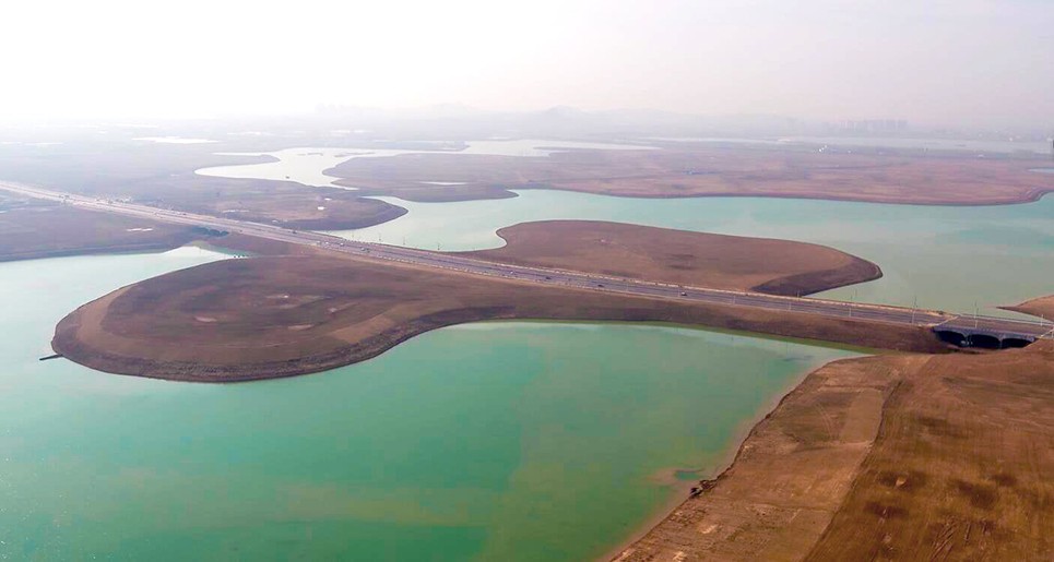 總治理面積 36100 畝,總投資 34.5 億元,項(xiàng) 目工期為兩年(2016 年—2017 年)。治理 目標(biāo)為打造中湖濕地公園,建成淮水北調(diào)中 心水庫。工程采用超前動(dòng)態(tài)控制工藝,監(jiān)管 采用 GPS—RTK 實(shí)時(shí)動(dòng)態(tài)圖根控制,輔以無 人機(jī)航空攝影測量技術(shù),達(dá)到高精度實(shí)景的 數(shù)字化管理目標(biāo)。工程竣工后,將形成可利 用土地 24500 畝,水域 11600 畝,蓄水庫容 36800000m3。 一座生態(tài)優(yōu)美、 風(fēng)光迷人的 中湖公園將于南湖公園、東湖公園交相輝映, 實(shí)現(xiàn)全市人民多年的夙愿!