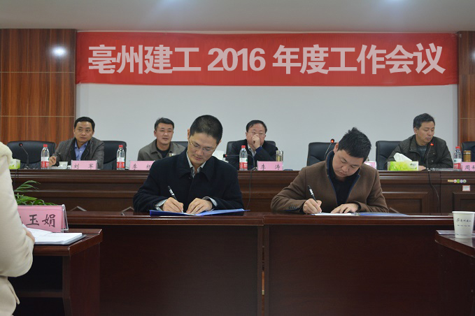 會上,亳州建工副總經(jīng)理周和友總結了公司2015年度工作,財務總監(jiān)李現(xiàn)龍作了2015年財務工作報告,機關各部門分別匯報了2015年主要工作及2016年計劃;副總經(jīng)理張國玉宣讀了公司人事調整通報,新調整人員進行了表態(tài)發(fā)言;總工程師夏士穩(wěn)傳達學習了“2015.8.4”市政污水管網(wǎng)疏通工程較大事故調查報告;各項目部與公司簽訂了《安全生產(chǎn)責任書》,進一步明確了安全工作職責。