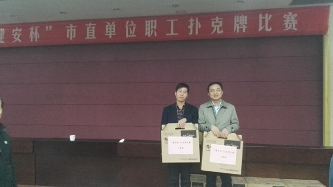 鑒于公司在建安集團“摜蛋比賽”中的出色表現(xiàn), 11月5日,由亳州市總工會主辦,建安集團協(xié)辦,在市行政會議中心第一會議室組織舉辦了“建安杯”市直單位職工撲克牌比賽,公司副總經(jīng)理劉軍、材料采購部經(jīng)理羅以紅被推選參加了亳州市市直單位職工撲克比賽,比賽共組織32只參賽隊伍,經(jīng)過緊張、激烈的淘汰賽,公司副總經(jīng)理劉軍、材料采購部經(jīng)理羅以紅獲得本次“建安杯”撲克牌比賽二等獎。