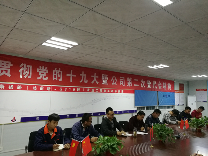 為把黨的十九大及公司黨代會(huì)精神落到實(shí)處,讓項(xiàng)目員工深刻領(lǐng)會(huì)項(xiàng)目工作的開展要和黨的思想引領(lǐng)緊密結(jié)合起來(lái),堅(jiān)定信心,牢記使命,11月3日,蕭楊路項(xiàng)目組織召開專題會(huì)議學(xué)習(xí)貫徹黨的十九大及公司黨代會(huì)精神,助力施工生產(chǎn)。