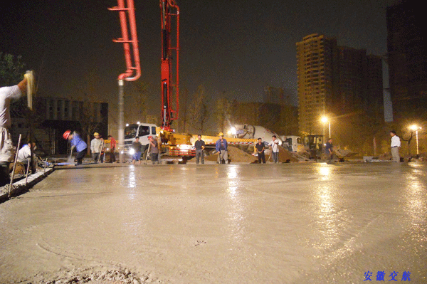 零晨3:40,細(xì)雨綿綿,隨著砼泵車的最后一聲鳴響,滁州市政務(wù)中心廣場第二階段四館廣場40000m2鋼筋砼基礎(chǔ)施工全部結(jié)束,因受四館土建施工影響,砼工作面交付緩慢,花崗巖鋪裝受阻,最后一塊砼工作面于本月18日交出,我方隨即展開搶工,10個日夜完成20000m3土方挖運(yùn)、2000m管道鋪設(shè)、1500m3級配碎石攤鋪、5000m2鋼筋砼澆筑。這也宣布了四館廣場進(jìn)入了全面鋪裝階段,力爭在10月15日前完成剩余約10000m2的花崗巖鋪裝任務(wù),為交航爭光,向農(nóng)歌會獻(xiàn)禮!