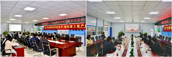 日前,三公司利辛片區(qū)黨支部黨史學(xué)習(xí)教育動(dòng)員大會(huì)在邵渡口大橋項(xiàng)目部召開。利辛G329項(xiàng)目部、利辛馬胡橋項(xiàng)目部以及邵渡口大橋項(xiàng)目部所有黨員干部參加學(xué)習(xí)。三公司經(jīng)理潘家奎主持會(huì)議。