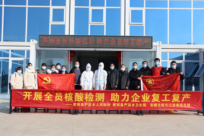 突出黨建引領,嚴格落實疫情防控責任。引江濟淮項目部積極發(fā)揮黨支部戰(zhàn)斗堡壘作用,密切聯(lián)系屬地政府部門,積極開展支部聯(lián)建共建,積極探索企業(yè)新時代文明實踐點、鄉(xiāng)鎮(zhèn)新時代文明實踐所、村(社區(qū))新時代文明實踐站齊發(fā)力打造志愿服務陣地平臺,用文明實踐賦能地方和企業(yè)高質量發(fā)展。近日,為做好節(jié)后復工復產(chǎn)工作,引江濟淮項目部聯(lián)合嚴店鄉(xiāng)人民政府、嚴店鄉(xiāng)蓮花村、嚴店鄉(xiāng)衛(wèi)生院以引江濟淮新時代文明實踐點為平臺開展志愿服務活動,在實踐點設置臨時核酸檢測點,對引江濟淮項目復工復產(chǎn)人員進行全員核酸檢測,助力企業(yè)復工復產(chǎn)。