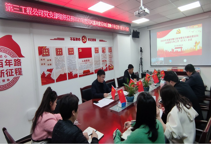 3月24日下午,第三工程公司召開2023年黨風(fēng)廉政建設(shè)和反腐敗工作會議,全面總結(jié)2022年黨風(fēng)廉政建設(shè)和反腐敗工作,對2023年重點工作進(jìn)行部署。會議由黨支部書記、副總經(jīng)理顏海峰主持。