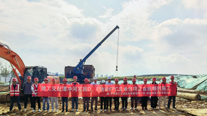 7月26日上午,建工交航潭沖河家園項目首根預(yù)制管樁順利施工。