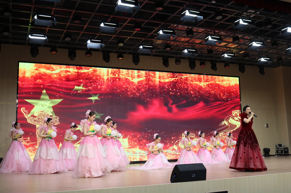 “小時(shí)候,總聽(tīng)爺爺說(shuō),老屋灰塑那一鷺青蓮,那是代代傳承的家訓(xùn)寓言,出淤泥而不染,風(fēng)清氣正香遠(yuǎn)。長(zhǎng)大了,總聽(tīng)黨的話,為了信仰一路清廉,這是新時(shí)代里的正氣詩(shī)篇,忠誠(chéng)勇于擔(dān)當(dāng),向著心中的太陽(yáng)?!卑殡S著悠揚(yáng)抒情的旋律,女歌手深情款款、步伐從容,舞蹈演員們熱情洋溢、舞姿曼妙,通過(guò)將廉潔文化與舞臺(tái)藝術(shù)表現(xiàn)巧妙融合,共同詮釋了“一路清廉風(fēng)正揚(yáng)帆”的目標(biāo)愿景,也充分展現(xiàn)了公司廣大黨員干部堅(jiān)守初心、清正廉潔的擔(dān)當(dāng)品質(zhì)。