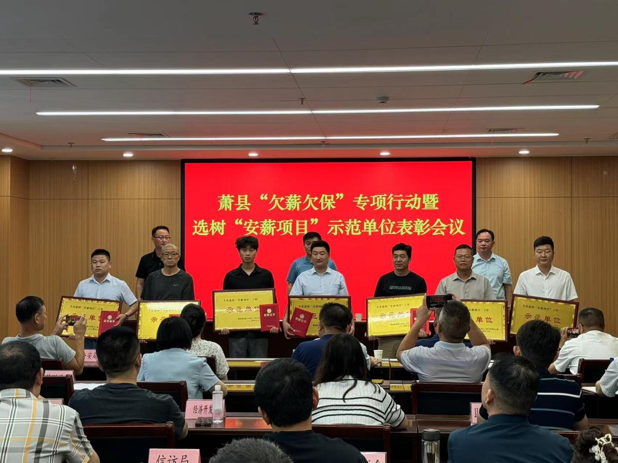 7月31日,蕭縣召開“欠薪欠保”專項(xiàng)行動(dòng)暨選樹“安薪項(xiàng)目”示范單位表彰會(huì)議,由安徽建工交通航務(wù)集團(tuán)有限公司承建的S239蕭縣北至G310段改建工程02標(biāo)段(蕭楊路提升)項(xiàng)目施工項(xiàng)目榮獲表彰。