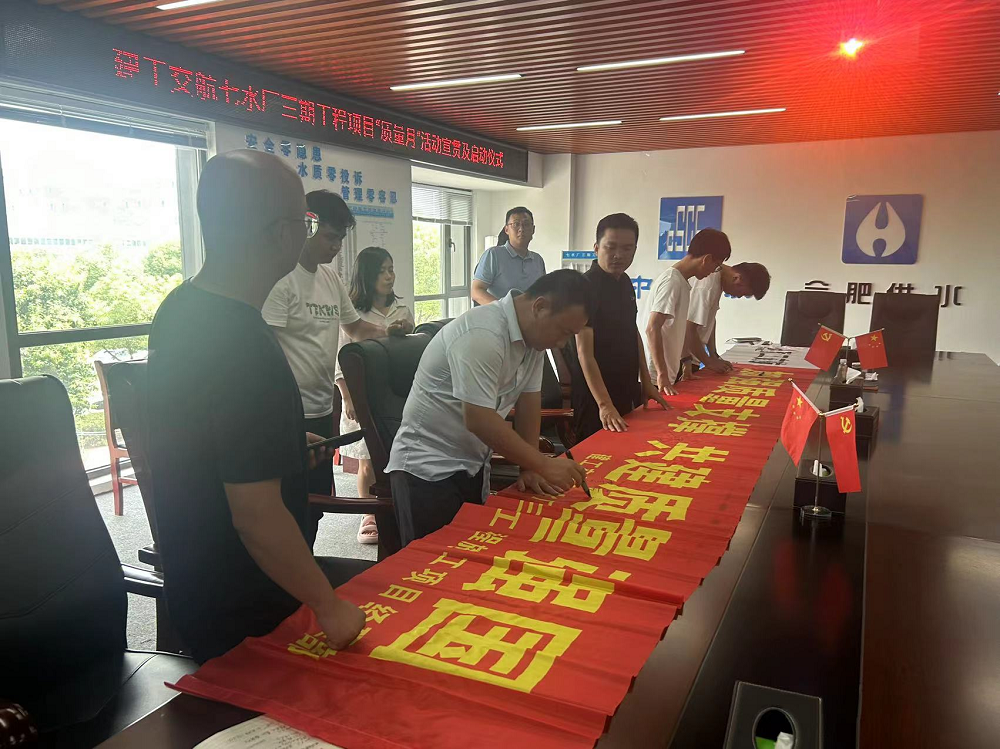 9月3日,七水廠三期工程項目開展2024年“質(zhì)量月”活動啟動儀式,宣貫公司文件、質(zhì)量月宣誓及項目質(zhì)量月活動方案宣貫、組織觀看質(zhì)量事故案例、制作宣傳條幅并簽名。