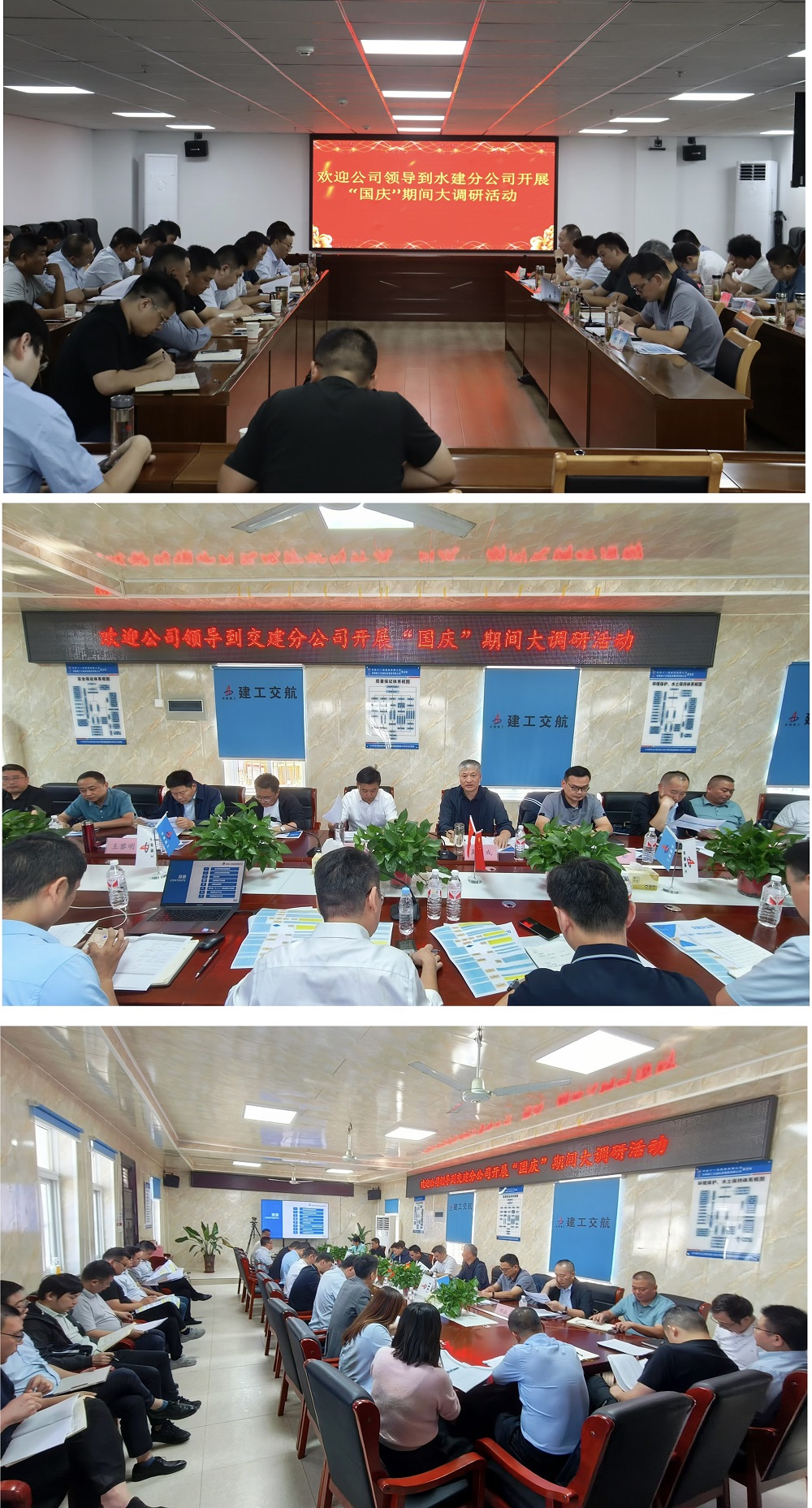 李登祥一行先后赴水建分公司、城建分公司、交建分公司及所屬重點項目,深入現(xiàn)場查看項目生產(chǎn)情況、現(xiàn)場重點區(qū)域假期安全保障工作,了解項目節(jié)假日期間應急值守等工作安排,會議聽取分公司及項目負責人關于分公司發(fā)展規(guī)劃、市場經(jīng)營、項目建設、安全生產(chǎn)、人才培養(yǎng)等方面匯報,和與會人員進行深入交流討論。