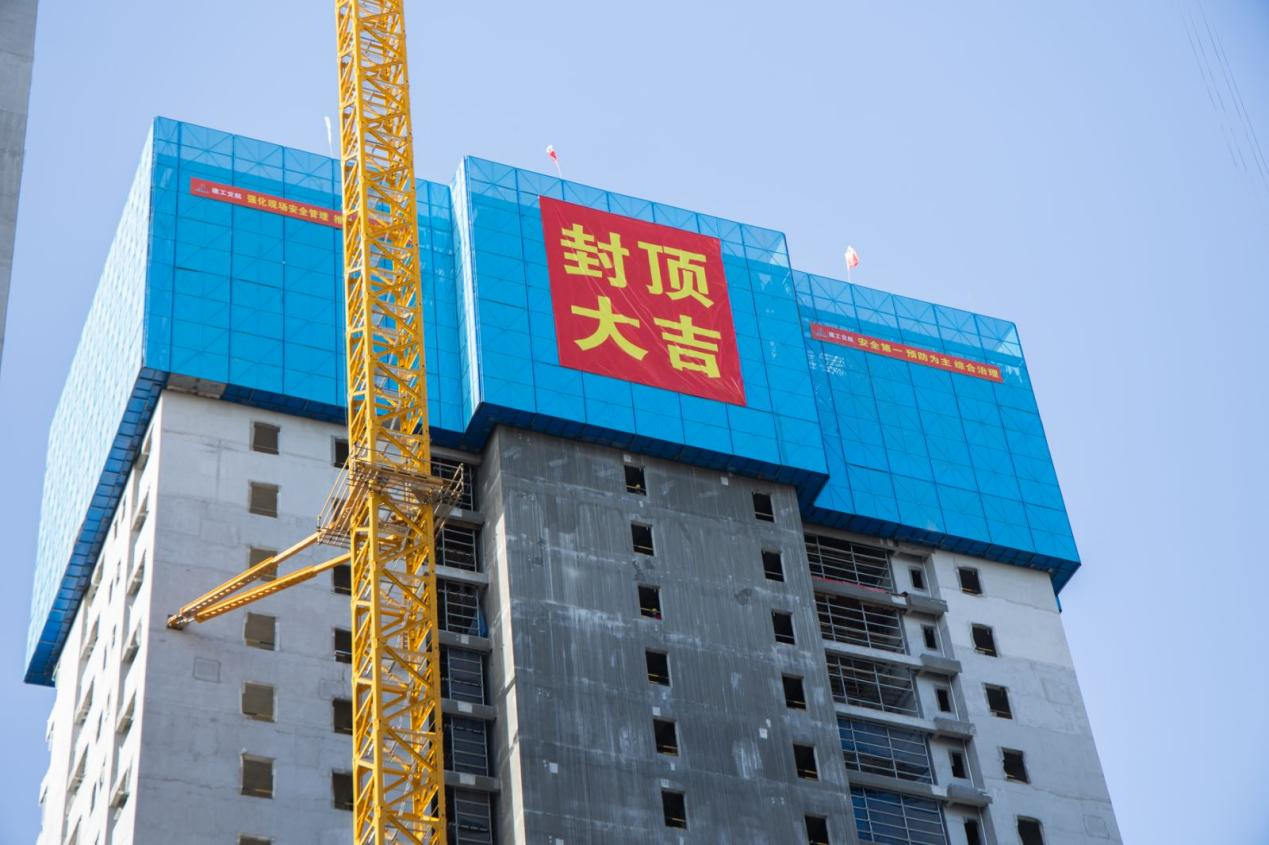 11月28日,合肥市瑤海區(qū)商機廠租賃住房項目施工現(xiàn)場彩旗飄揚,隨著最后一方混凝土的澆筑完成,項目所有樓棟全部提前順利封頂。