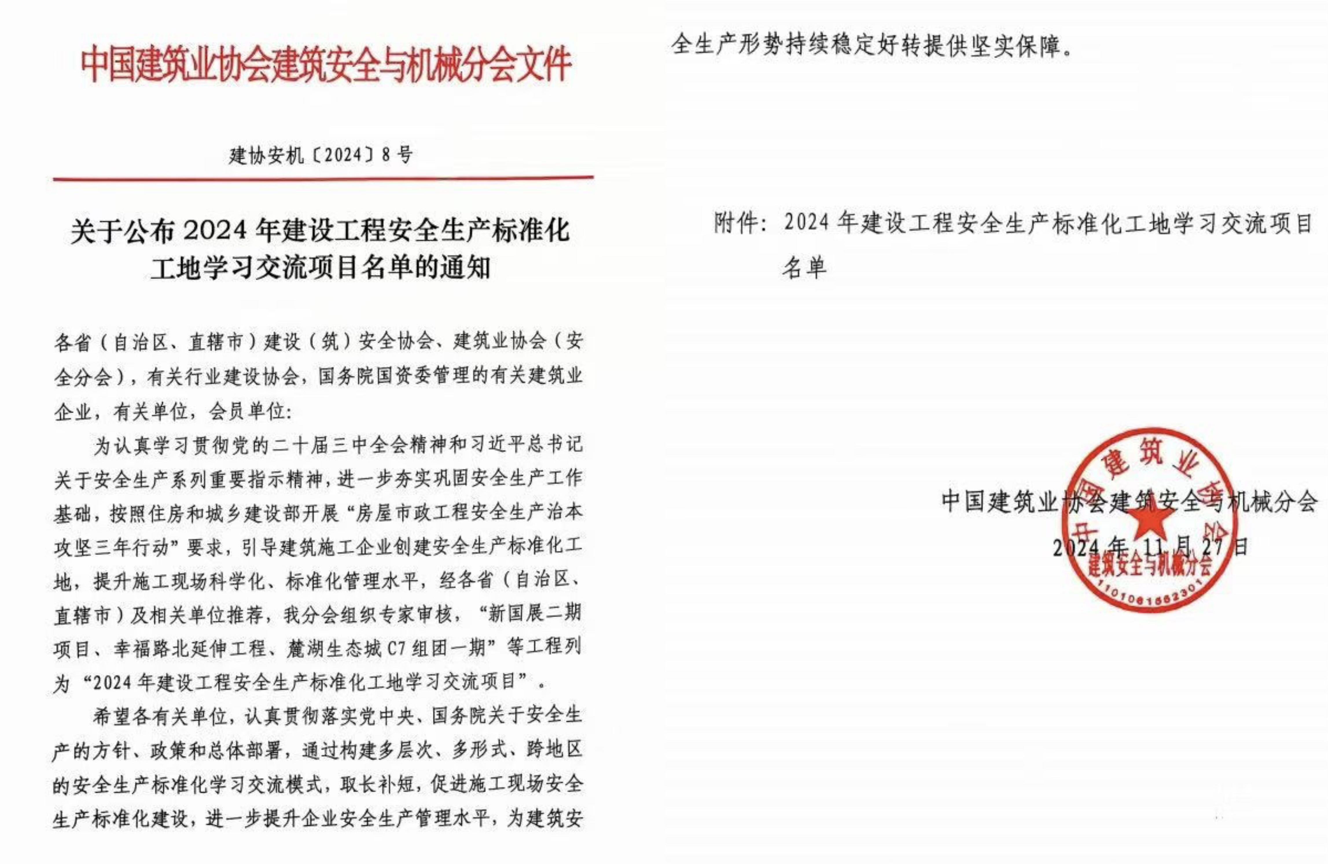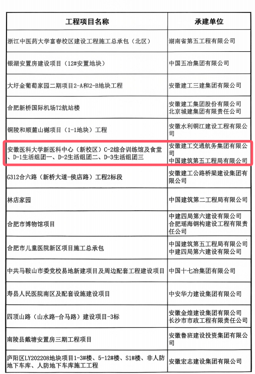 近日,中國建筑業(yè)協(xié)會建筑安全與機(jī)械分會公布了“2024年全國建設(shè)工程安全生產(chǎn)標(biāo)準(zhǔn)化工地學(xué)習(xí)交流項(xiàng)目”名單,由建工交航承建的安徽醫(yī)科大學(xué)新醫(yī)科中心(新校區(qū))一期一批次項(xiàng)目光榮上榜。