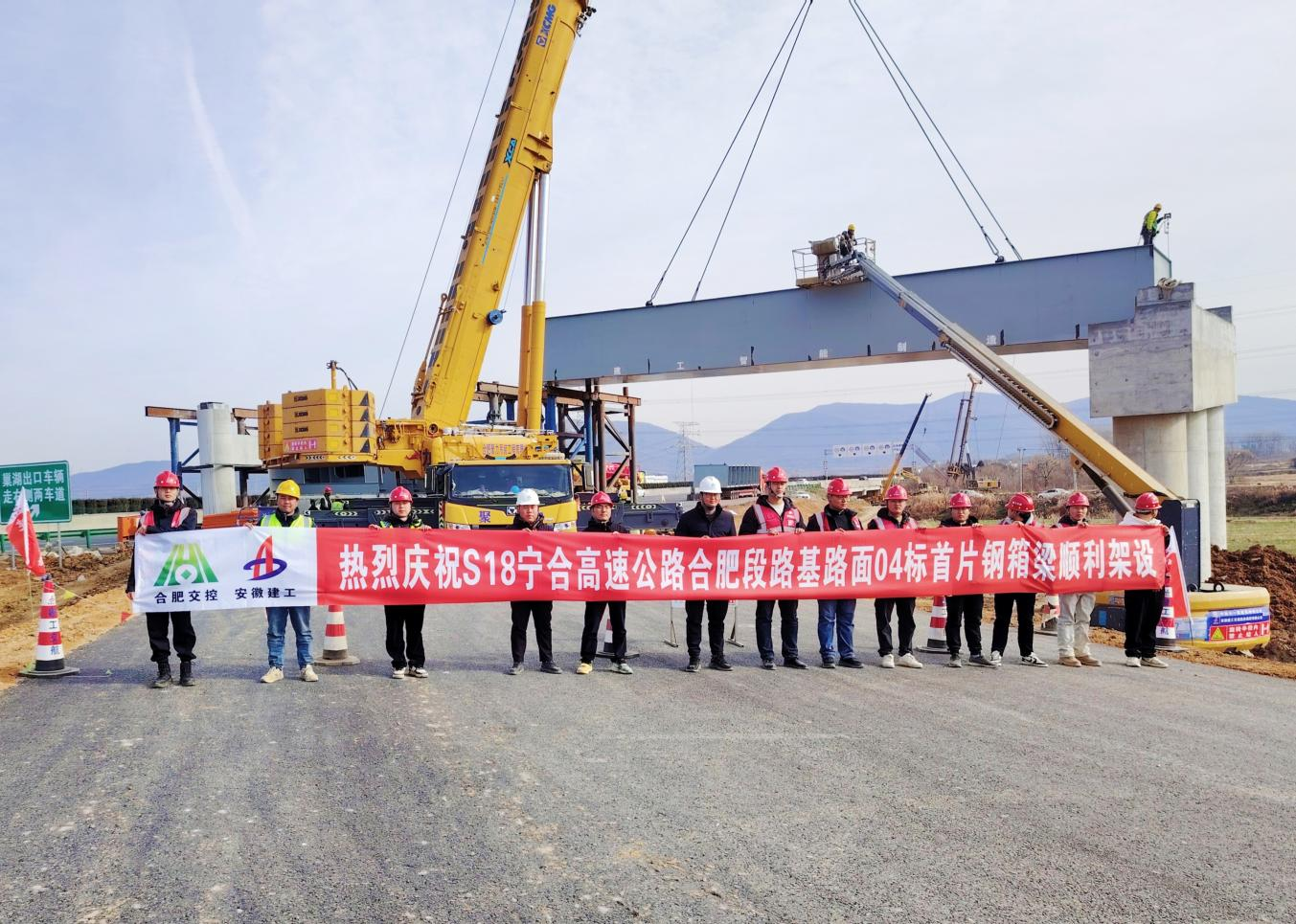 1月7日,S18寧合高速公路合肥段路基路面04標項目首片鋼箱梁順利架設(shè),標志著項目工程建設(shè)邁上新臺階。