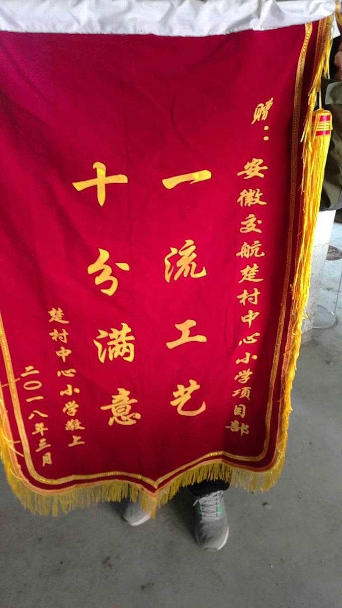 3月16日,蒙城楚村中心小學(xué)校長郟峰一行專程趕往安徽交航蒙城楚村中心小學(xué)項(xiàng)目部,向項(xiàng)目部贈(zèng)送印有“一流工藝,十分滿意”的錦旗,并對(duì)項(xiàng)目部的辛勤付出表示由衷的感謝。